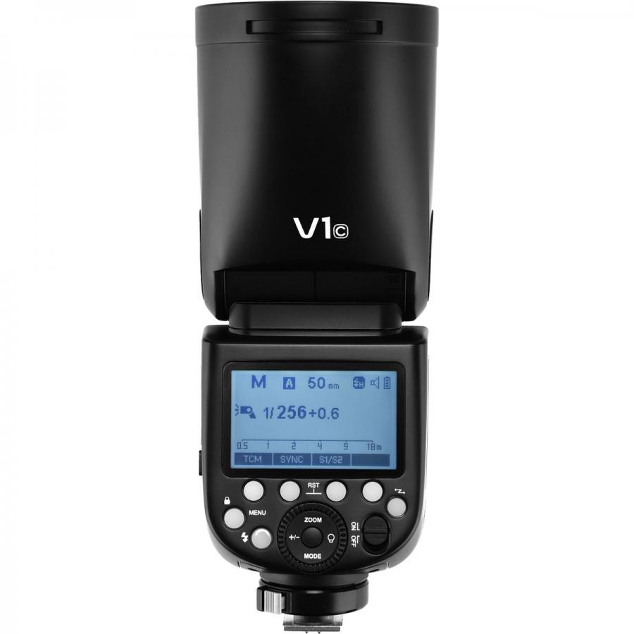 À l'arrière se trouve un écran LCD facile à lire. La tête de flash du V1 peut être tournée de 330 degrés horizontalement et peut être inclinée de 120 degrés vers le haut et vers le bas. La puissance est réglable en 10 étapes. Au réglage le plus élevé, le Godox V1 a une puissance de 76W / s. La durée du flash est réglable de 1 / 300s à 1 / 20000s.