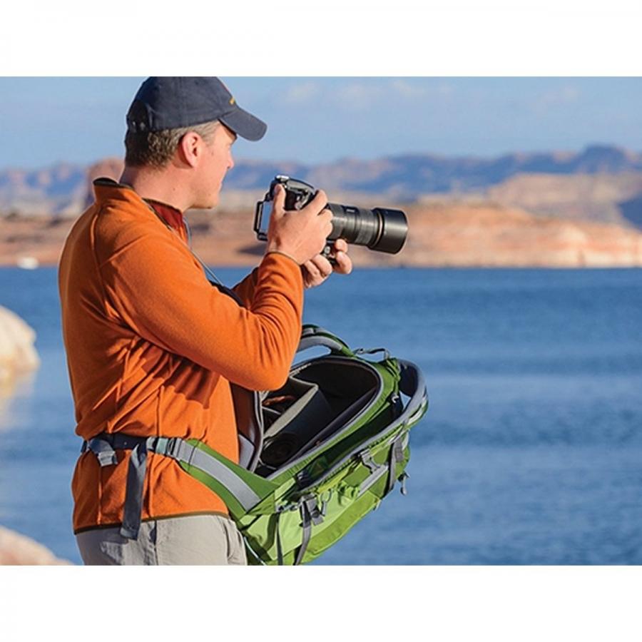 Le BackLight 26L, avec un compartiment arrière pour le matériel photo, vous permet d'accéder à votre équipement sans enlever le sac à dos.